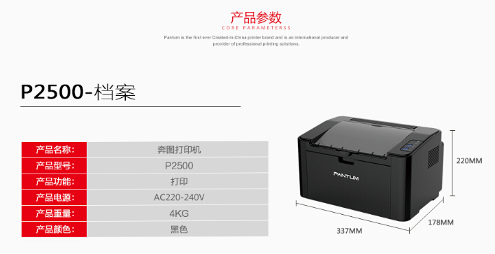 奔图(Pantum) P2500 A4 黑白 激光打印机 手动双面